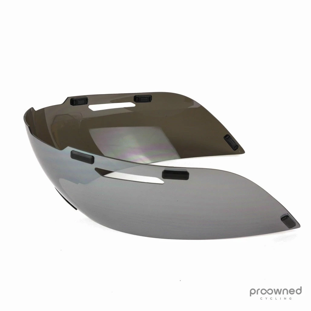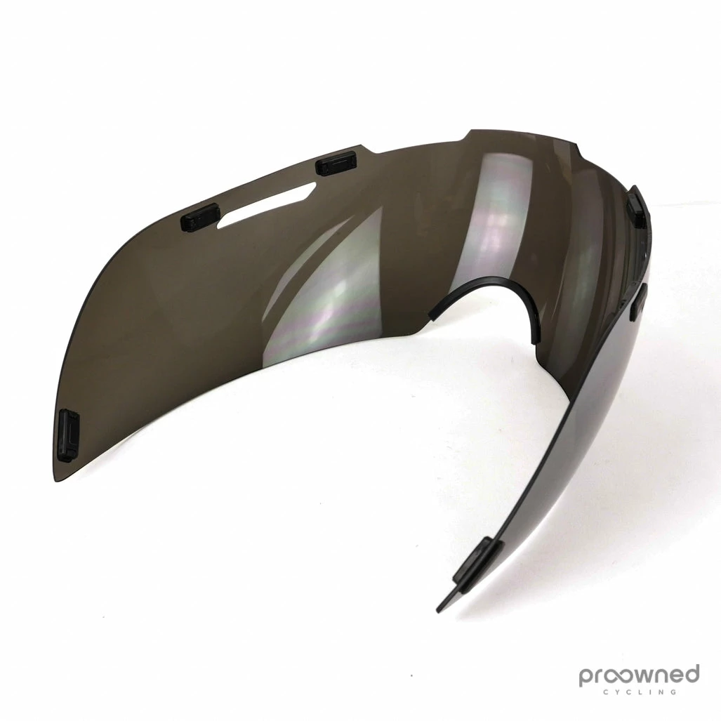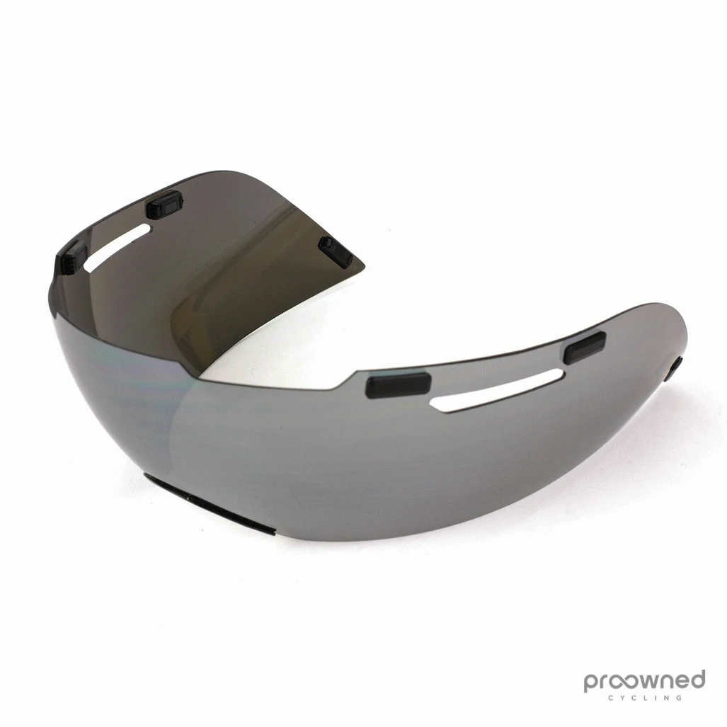 Original Lens for the Giro Aerohead time trial helmet. The visor is made for riding in bright light. The lens is grey and is therefore made for sunny conditions. The lens is made using Carl Zeiss technology to ensure exceptional optical precision and clarity. The lens is fixed to the helmet using magnets.