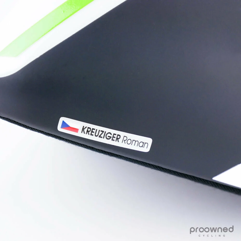 The helmets have name stickers on the side of the helmet that are easily removed if wanted. The option ‘random name’ is used for helmets with less known name stickers.