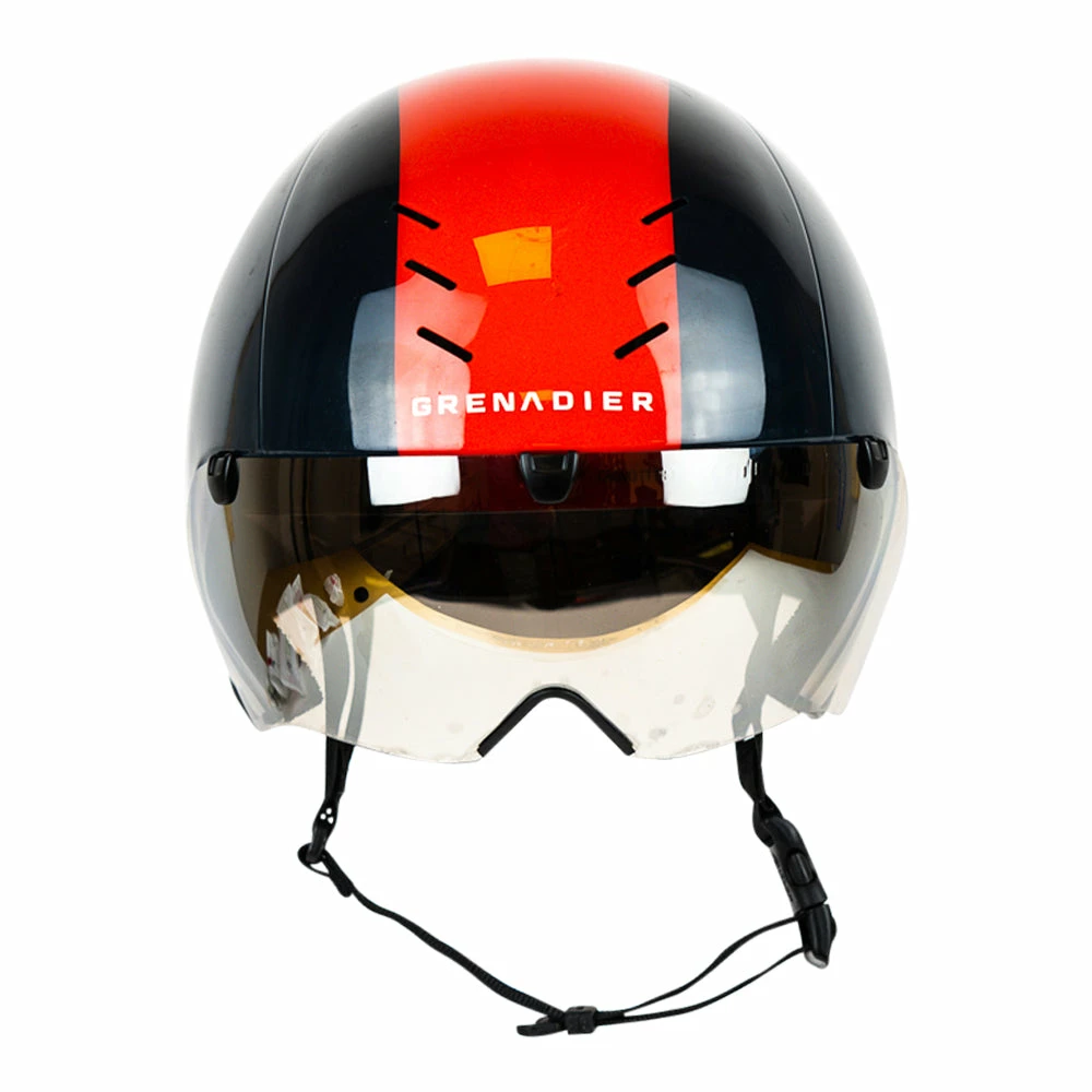 The Kask Bambino Pro Evo R.Carapaz Time Trial Helmet by Ineos Grenadiers is a further development of the popular short tail helmet Kask Bambino. Further tested in the wind tunnel and by Team Ineos Grenadiers riders.