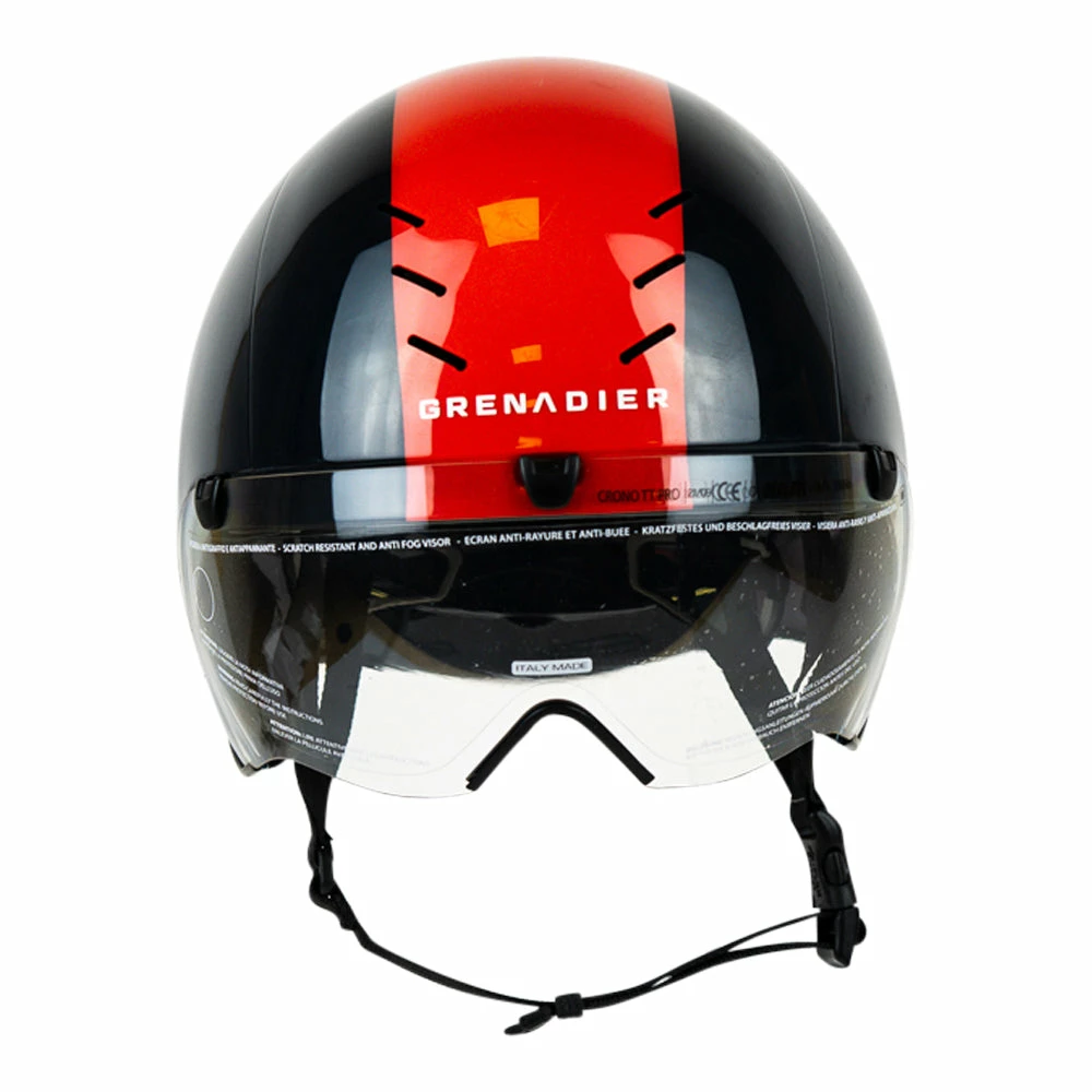 Kask Beluga R.Carapaz Time trial helmet by Ineos Grenadiers is as aerodynamic as possible due to the reduction in air resistance that occurs when riding. The helmet provides ample protection during the fall since no rider can safely stay in the same position for the entire race.