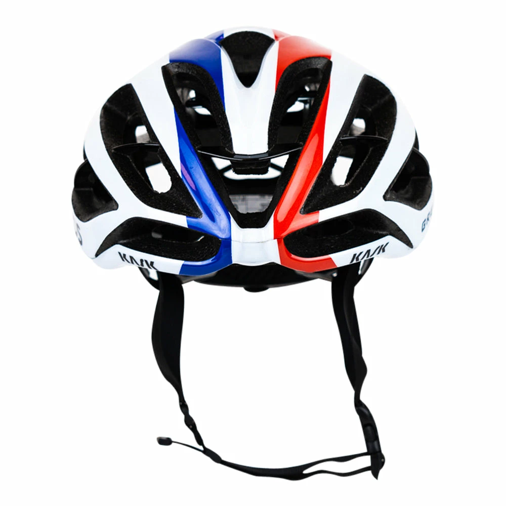 The Kask Protone GBR Champion B.Swift Road helmet by Ineos Grenadiers proves that a helmet can combine aerodynamics with comfort. At 230g, the Protone needs to be light enough to be comfortable to use without sacrificing safety. Kask uses multi-in-molding technology to create the polycarbonate cover for the top, base ring and rear of the helmet shell. It is bonded to the inner polystyrene cap by Kask’s in-mold technology to improve the shell’s shock absorption.