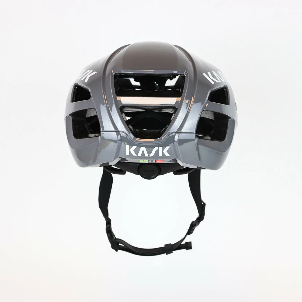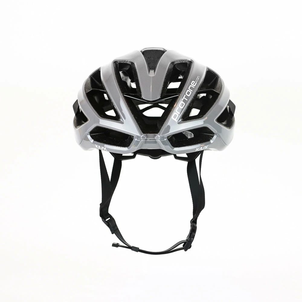The Protone helmet is proof that a helmet can both be aerodynamic and comfortable. To be comfortable the helmet has to be light and the Protone is just that. It weighs in at 230g (size M) without compromising safety. Kask uses its Multi In-Moulding Technology to create a polycarbonate cover for the top, base ring, and the back of the helmet’s shell. This is joined to the inner polystyrene cap via Kask’s In-Moulding Technology to improve the shell’s shock absorption.