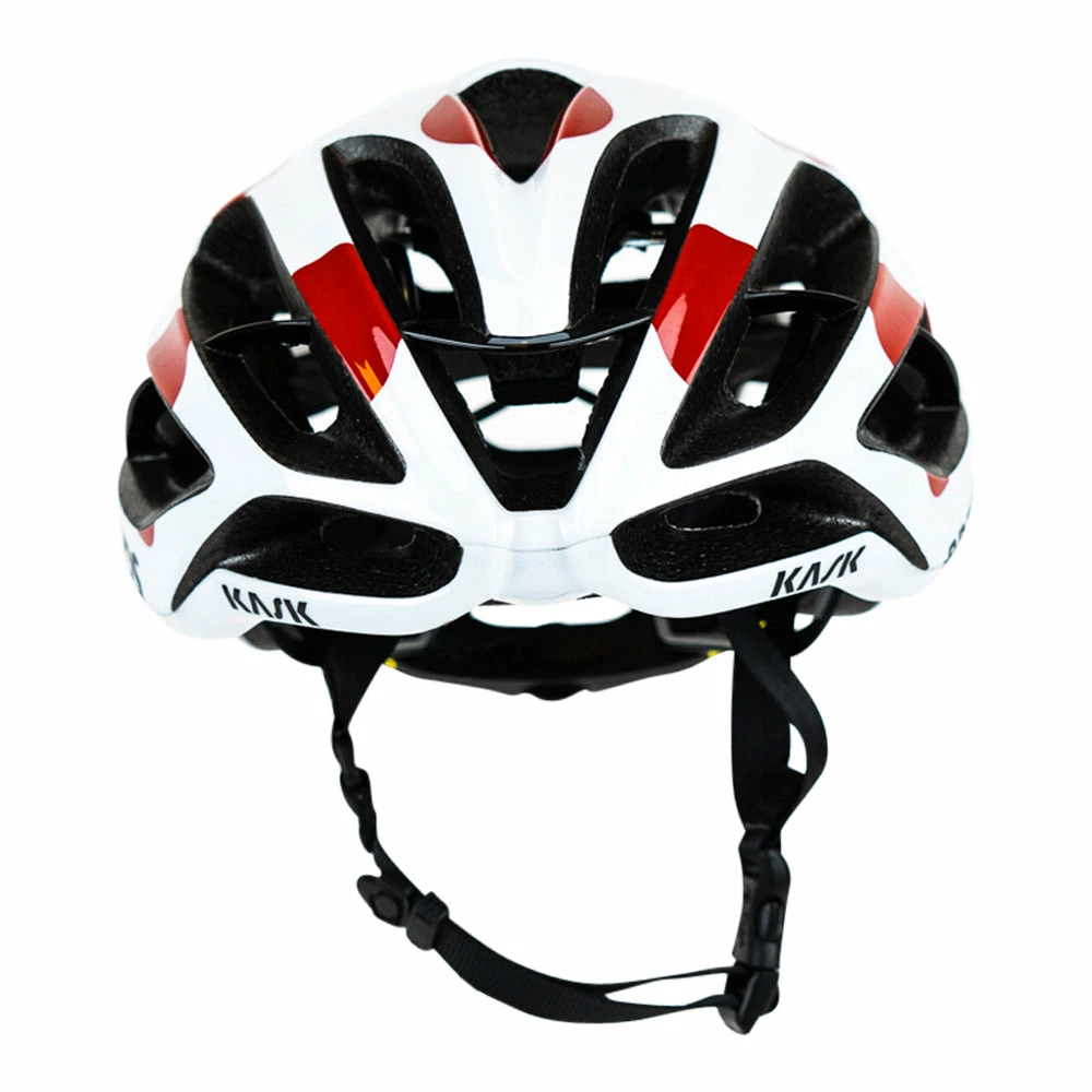 The Kask Protone Red Polka Road helmet by Ineos Grenadiers offers the ideal fusion of aerodynamic performance, low weight, optimal ventilation, and incredibly fashionable aesthetics. The best road helmet available, designed by Kask has proven itself in the most challenging professional cycling competitions worldwide.