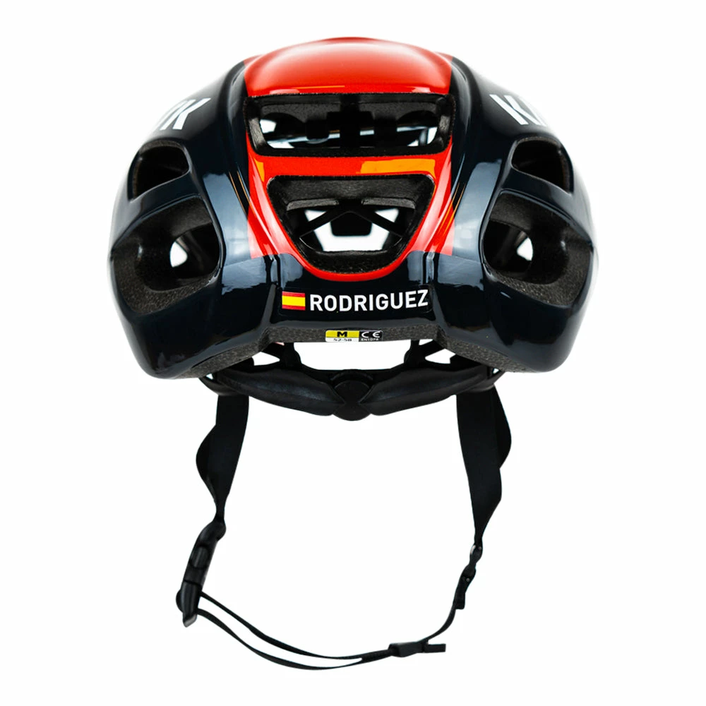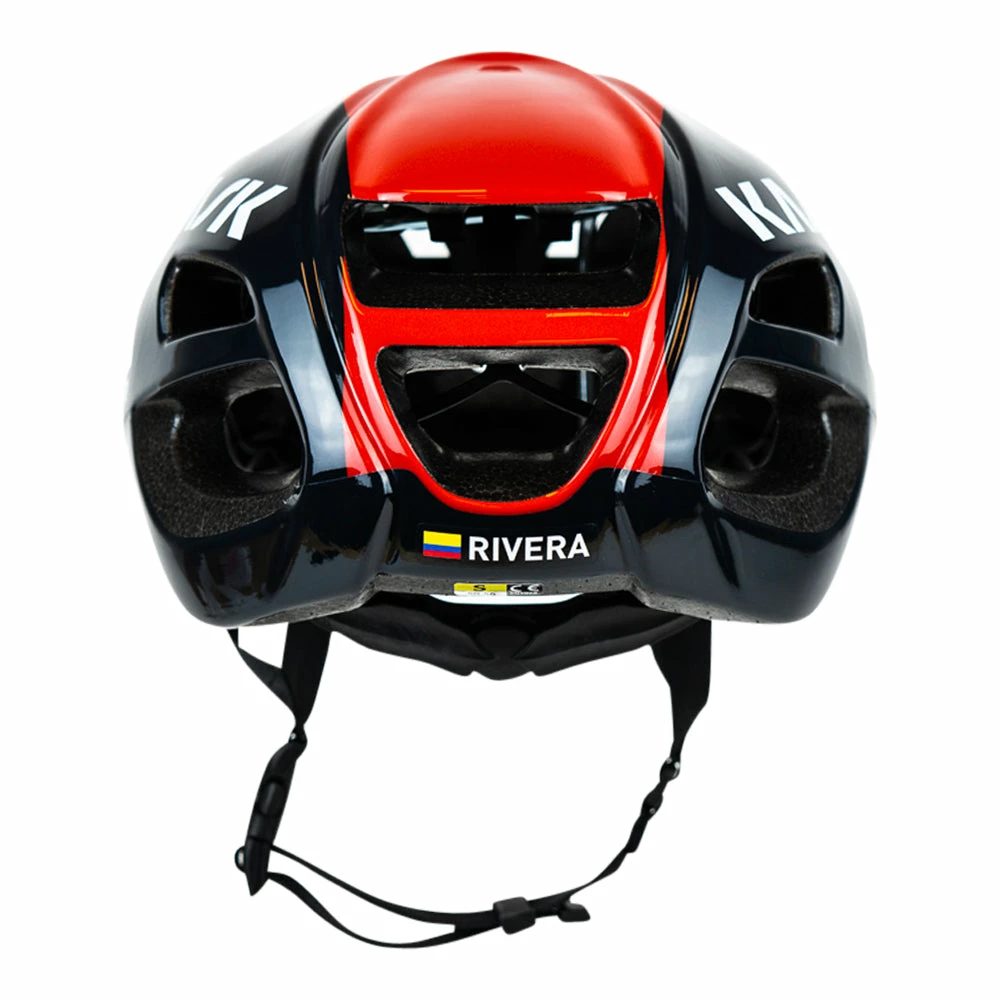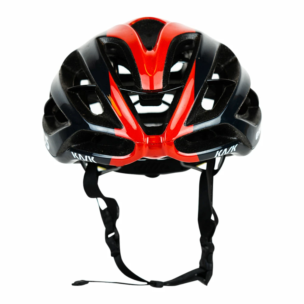 The Kask Protone Road helmet by Ineos Grenadiers offers the ideal fusion of aerodynamic performance, low weight, optimal ventilation, and incredibly fashionable aesthetics. The best road helmet available, designed by Kask has proven itself in the most challenging professional cycling competitions worldwide.