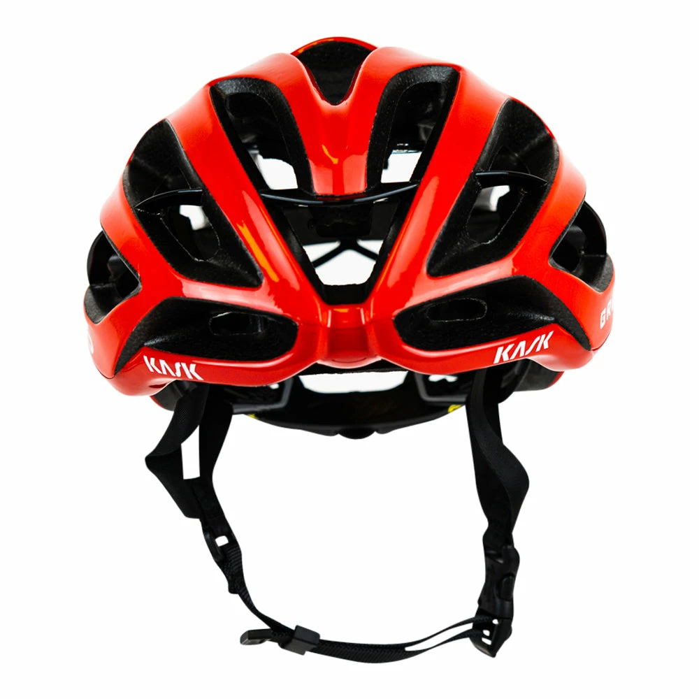- The polycarbonate layer that covers the shell on the top, on the base ring, and on the rear ensures greater safety and total protection owing to the MIT Technology, which is used in all KASK cycling helmets