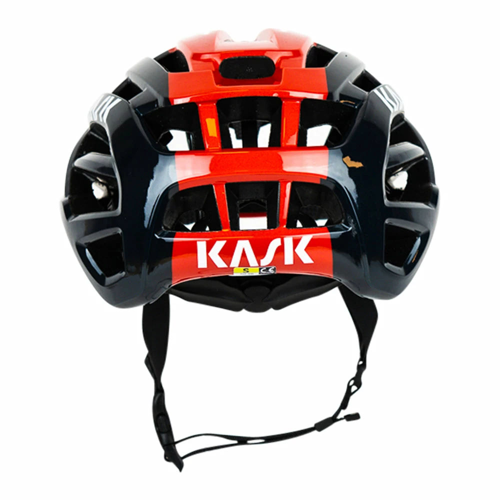 Kask uses multi-in-molding technology to create the polycarbonate cover for the top, base ring and rear of the helmet shell. It is bonded to the inner polystyrene cap by Kask’s in-mold technology to improve the shell’s shock absorption. Finally, the upper area is reinforced with an internal undercarriage that enhances impact protection and helps maintain the integrity of the helmet after impact.