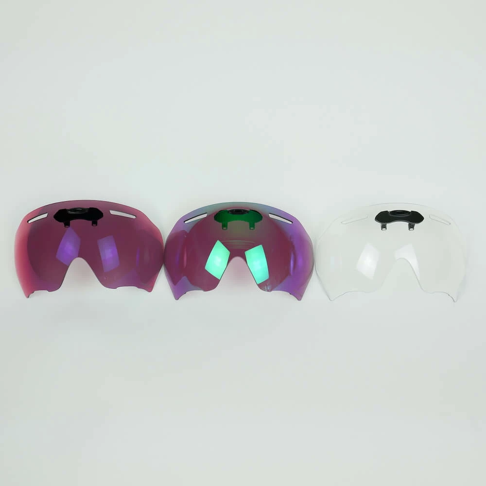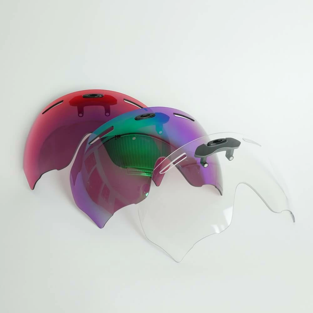 The Red and Clear lenses are the ones which all Aro7 helmets comes with as standard. The Green Prizm Jade Iridium lense is custom made for Team Dimension Data and not publically available anywhere else.