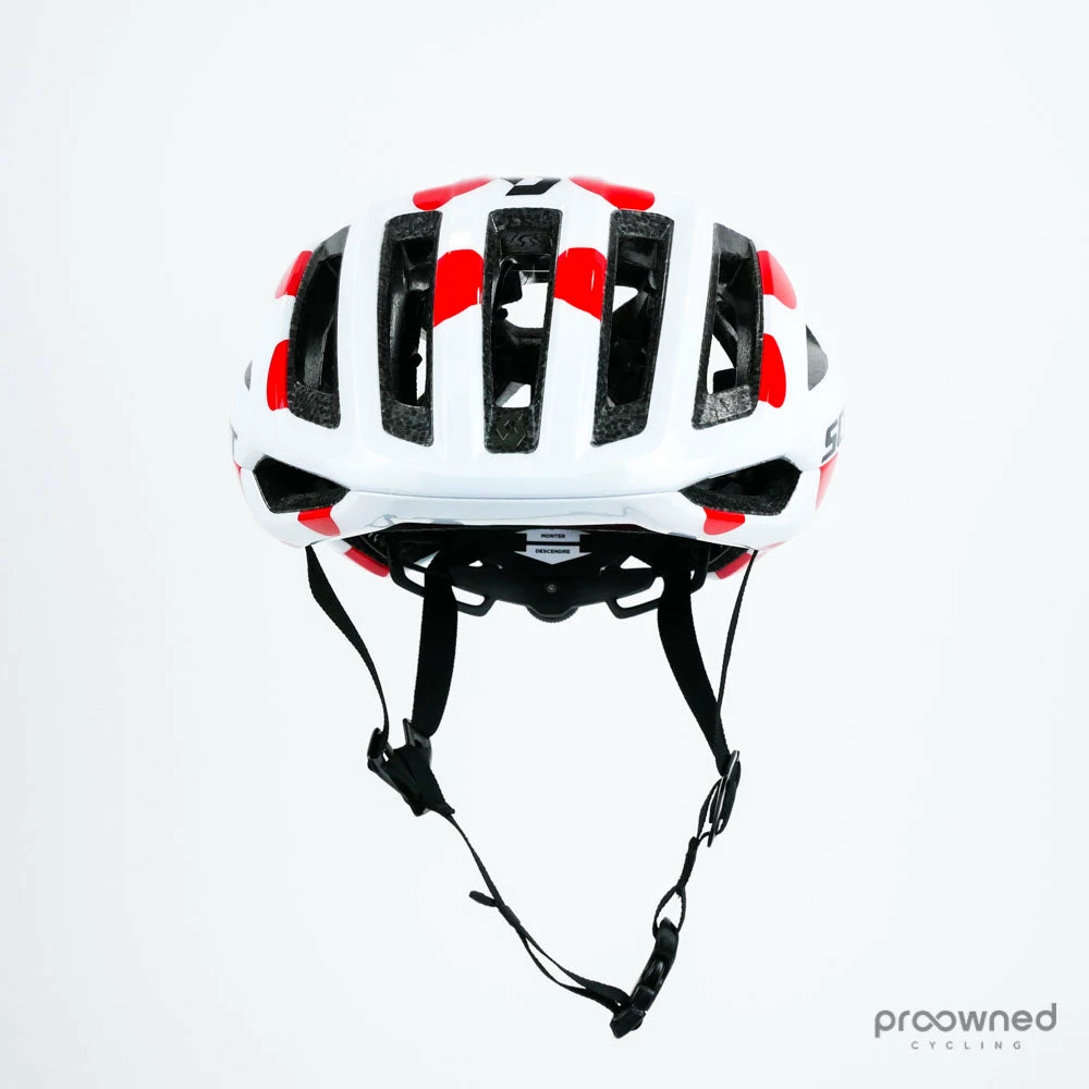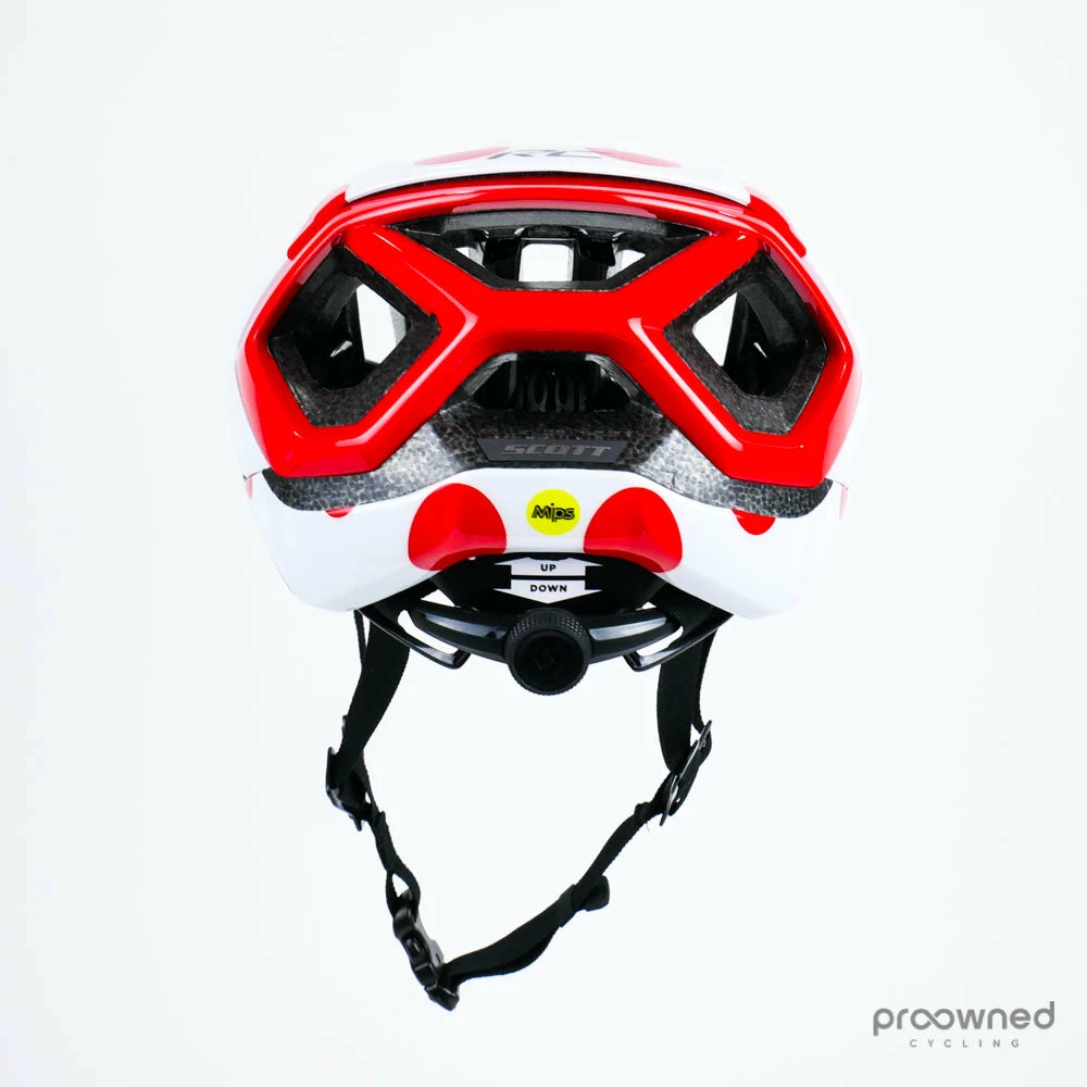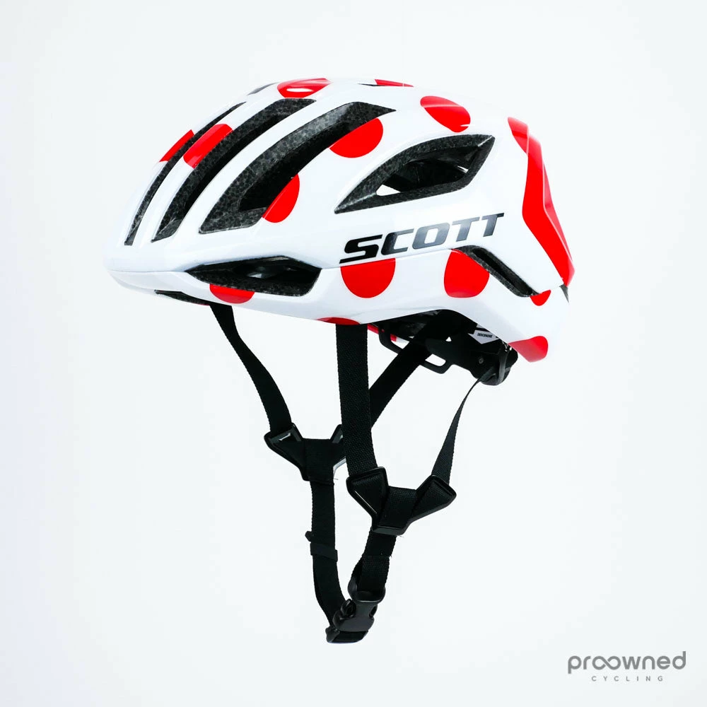Brand new Scott Centric Plus Helmet made for team Mitchelton-Scott for the 2019 season. The helmet was made for if Mitchelton-Scott got the mountain leaders jersey at the Tour de France.