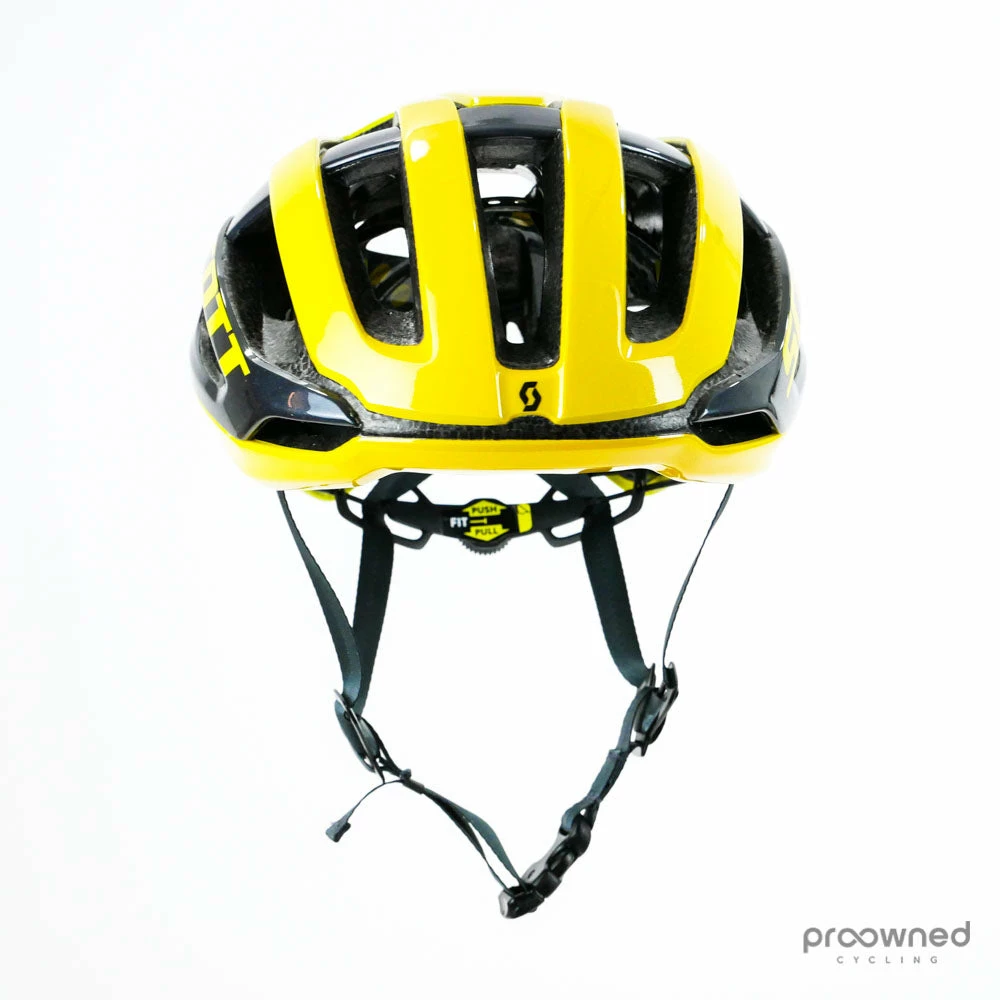 Brand new Scott Centric Plus Helmet made for team Mitchelton-Scott for the 2019 season. The helmet was made for if Mitchelton-Scott got the yellow jersey at the Tour de France.